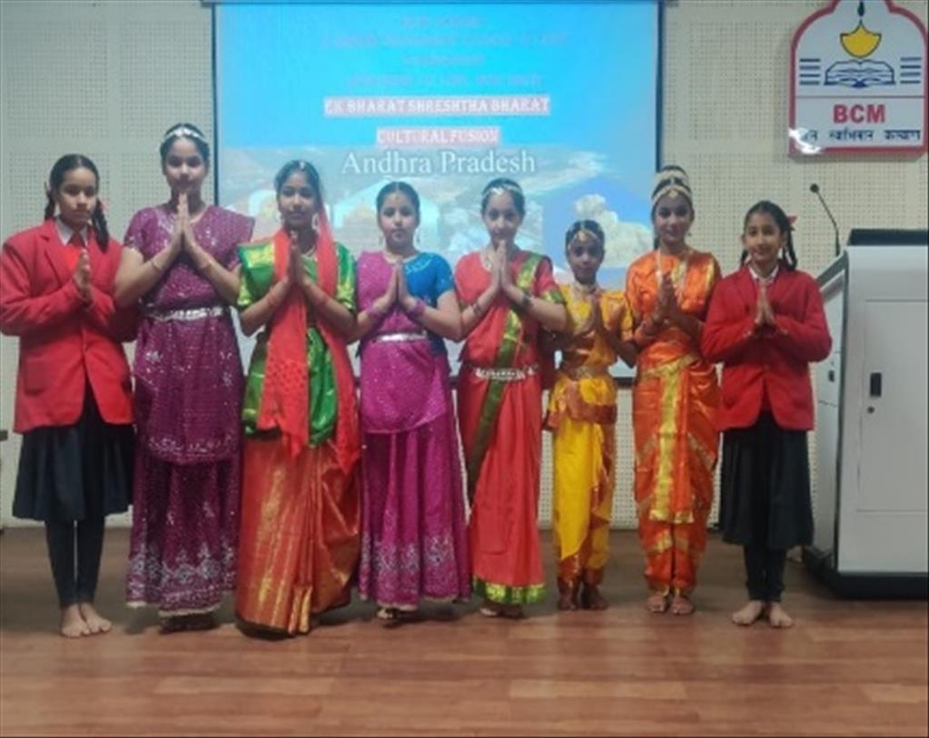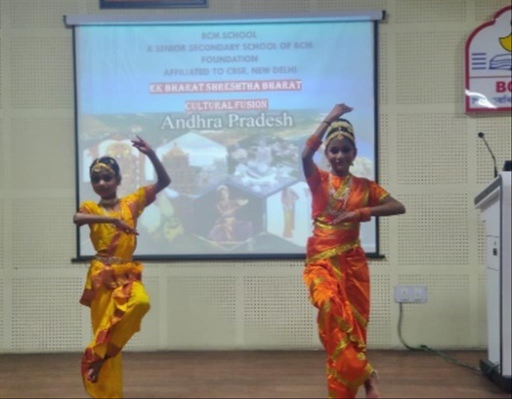 Ek bharat Shreshtha Bharat, an initiative taken by CBSE, aims to enhance interaction and promote mutual understanding between people of different states/UTs through the concept of states/UTs pairing. In the same direction Punjab is paired with Andhra Pradesh. To make the students aware about art and culture of Andhra Pradesh an activity is organized in class IV wherein students prepared different art forms of Andhra Pradesh. An inter section folk dance competition was organized for students of class V in which students presented folk dance of Andhra Pradesh.