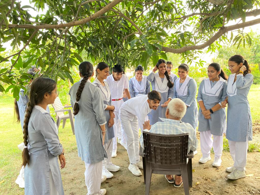 Psychology students of 11th class went to Nishkam ashram,Biha pind. Students have prepared handmade cards,paintings,roses,performances and games for old people over there. All students tried to build rapport with them. They played the games like Guessing the word, cup and balls and passing the parcel. Old people participated very enthusiastically and were enjoying as kid . As students were assigned for taking case history of any one member over there, after talking with them students came to know about their life history and they found answers why they were there. Many people were suffering from mental health problems like depression, extreme stress There were many reasons for which these people came here, but the most comon was that their children doesnt want to take their responsibility.