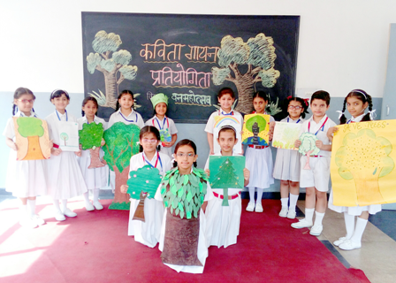 Trees have been serving humanity since time immemorial.The very existence of man would not have been possible without trees and other green plants.If a tree is saved even at a cost of one’s head, it’s worth it said the noted activist Amrita Devi Bishnoi. This the reason why India has so many festivals related to trees. One of them is the “Van Mahotsav” Day or the “Forest Day” which is celebrated in the month of July. It is very much important to make our young generation conscious about theharmful effects of cutting trees and spoiling our environment. In this regard different activities were conducted. Class III had a Poem Recitation Competition on the topic “Van Mahotsav” in hindi whereas Class IV and V participated in Hindi ‘Declamation Contest’ on the topic “ Modernisation Versus Environment”. The students participated enthusiastically in these activities.