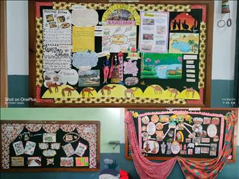 They also motivated the students and told them to feel proud to be Indian and mentioned that inspite of diversities , we are one and we must respect our culture. A collage making competition on the theme "Rich Culture and Heritage of India" was conducted for the students of class IV and V. Students made beautiful collages depicting the vibrant and diverse culture of our country. The winners are as follows.